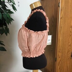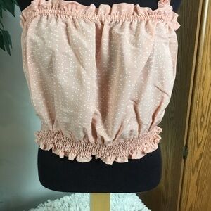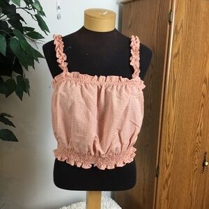 Lily Rose XL smocked waist crop top w/ruffle elastic strap stripes peach with white dots approximate pit to pit 16 shoulder to hem 15 refer to photos for more details