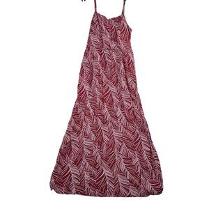 maxi dress, Lily Rose, leaf print, polyester dress, summer wear, red dress, pink dress, adjustable straps, women's fashion, made in China, casual style, sleeveless dress, plus size dress