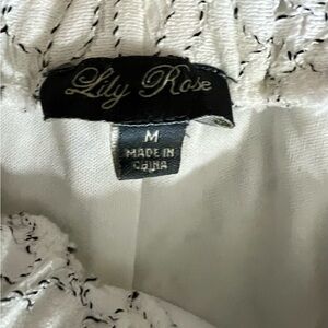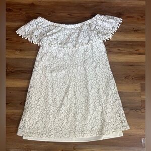Lily Rose adorable white lace dress with liner and Pom poms, size M,27” long, can be worn on or off shoulders