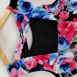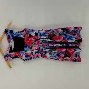 Lily Rose mini dress size XS skater floral print no belt stretch waist open back