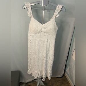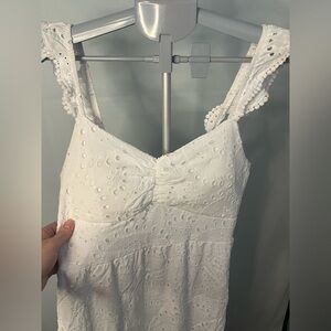 Elegant white eyelet dress perfect for any occasion. Features delicate detailing and a flattering fit.