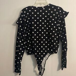 Lilly Rose Black, White polka dot body suit, size 3X (92% Cotton, 8% Spandex)