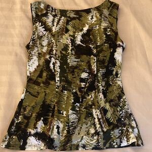 Lily Sleeveless Blouse with Draped Cowl Neckline in Abstract Print. Size Small.