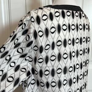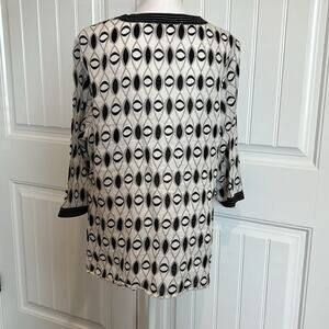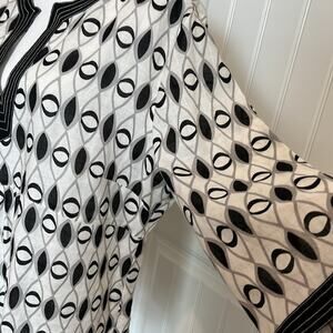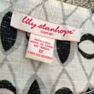 Lily Stanhope Woman Linen Tunic Plus Size 1X Geometric Black Cream Classy Top