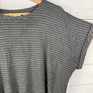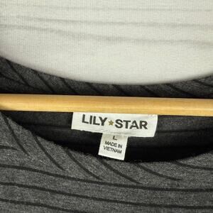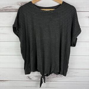 Lily Star Women's Gray Black Striped Cropped Blouse Tie Knot Size L
