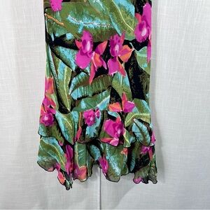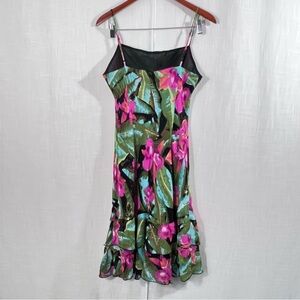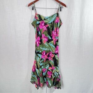 Lily Tropical Floral Ruffle Hem Spaghetti Strap Dress Size L