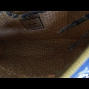 It's a lily waters hand bag with paisley on it. It has a front pouch, 2 slip pockets inside. No stains or tears.