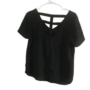 Lily White black short sleeve blouse in size medium. Crisscross detail in the back. Excellent condition.