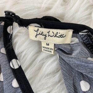 Lily White Black & White Polka Dot Top Blouse Front Knot Peplum Size Medium New