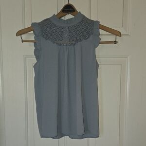 Lily White Blue Sleeveless Ruffled Blouse BIZ CASUAL SOFT FEMININE RESORT TRAVEL