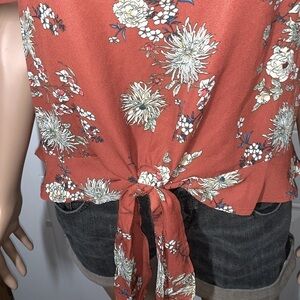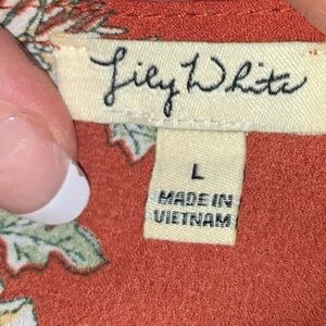 Lily White Floral flutter short sleeve Blouse Rust Large