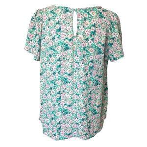 Lily White Green Pink Floral Blouse Large