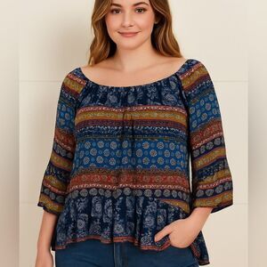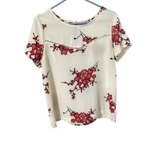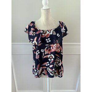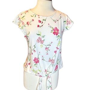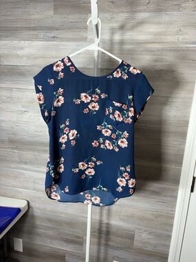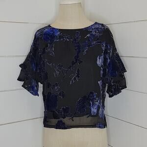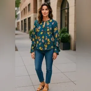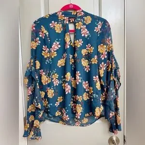 Lily White Teal Floral Ruffle Sleeve Blouse Size Medium