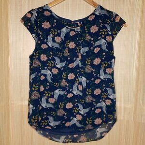 Lily White Womens Bird Print Sleeveless Blouse Med