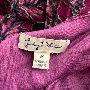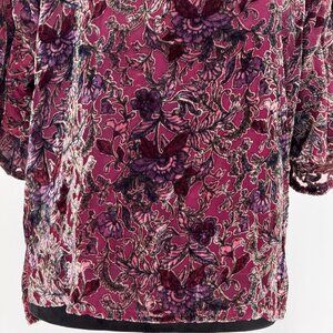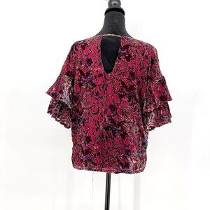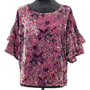 Lily White Womens M Velvet Burnout Top With Ruffle Tiered Sleeves & Floral Print