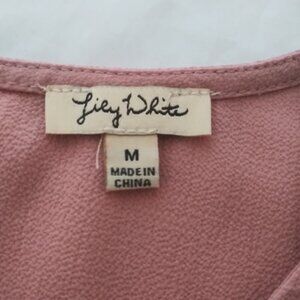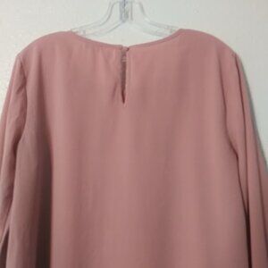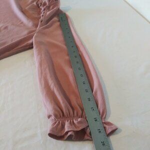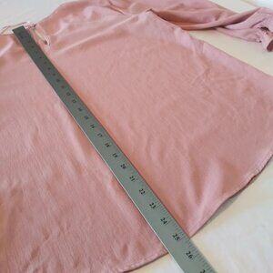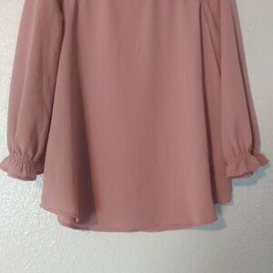 Lily White women's pink lightweight pullover blouse, puff elastic long sleeve, lightweight, key hole back with button closure
