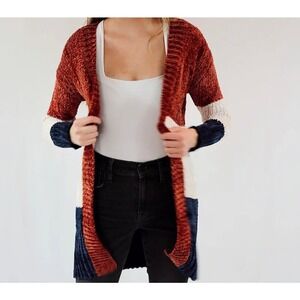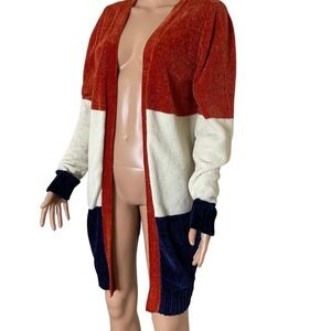 Lily White cardigan sweater long color block open front Soft orange/blue SZ M
