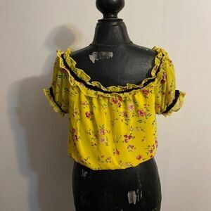 Lily White Yellow Floral off the shoulder crop top, size L (100% Polyester)