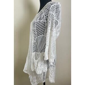 Lily Women's Crochet Open Knit Asymmetric Top White L Whimsical Mermaid Boho