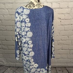 This is a women's pre-owned long sleeve stretch knit floral print popover round neck long line tunic that is made by Lily firmiana.