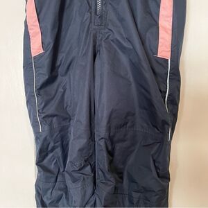 Lily and Dan Children’s bib snow pants. Kids size Small. Navy blue & pink. Good condition. No holes/tears/rips. Cat free and smoke free home. 14” armpit to armpit, 37” total length.