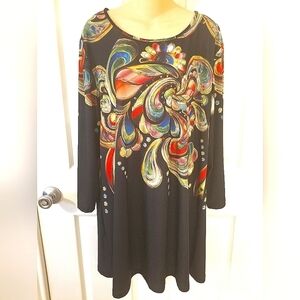 Beautiful Lily by Firmiana Dress with art print, in great condition, colorful, fun and contemporary, easy to wear, washes well, size 2XL.