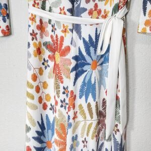 This Lily by Firmiana dress brings a garden party layers feel with its bright multicolor floral print and soft wrap styling. Women’s size XL. The fabric drapes easily and the pattern has pretty, wafty florals, giving it movement without feeling busy. The shape lands relaxed sophisticated, with the tie waist adding definition while keeping the fit comfortable and wearable.