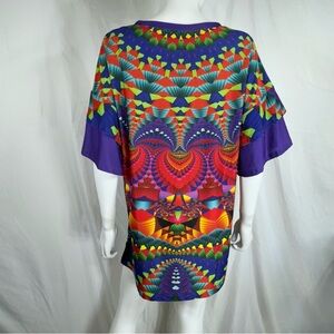 Lily by Firmiana Multi-Colored Kaleidoscope Ruffled Sleeve Tunic Top