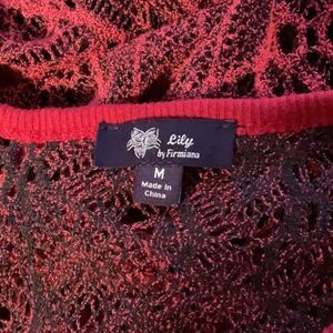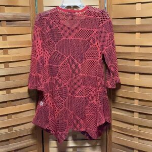 Lily by Firmiana Red 3/4 Sleeve Asymmetrical Tunic Blouse Shirt Women M Polyeste