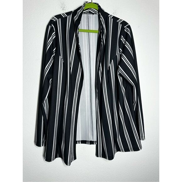 Lily by Firmiana Striped Black White Blazer Cardigan Open Front Size 3XL