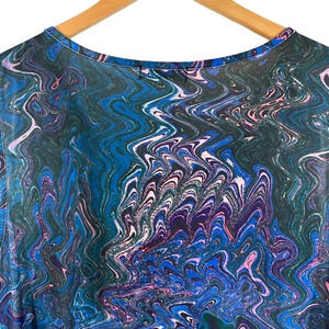 Lily by Firmiana Tunic Plus 1XL Abstract Swirl Pattern Green Blue Pink Purple White Pleated Multicolor