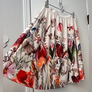 Add a touch of elegance to your wardrobe with this Lily by Firmiana Women’s Floral Print A-Line Skirt. The vibrant floral design, featuring blooming flowers and butterflies on a cream background, makes this skirt a statement piece for any occasion. Made from a soft and stretchy blend of 95% polyester and 5% spandex, it ensures a comfortable fit that flatters your figure. The A-line cut provides a flowy silhouette, perfect for pairing with blouses or fitted tops for a polished, feminine look. This versatile skirt can transition effortlessly from day to night, making it a great choice for both casual and formal settings. Size small.