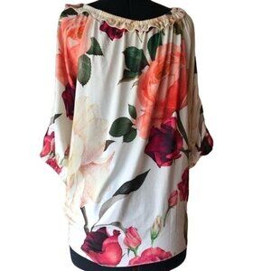 Lily for Firmiana Peasant Blouse With Coral Roses Size L