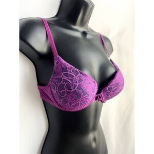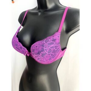 Lily of France Purple Lacy Bra Size 34B Barbiecore Magenta Pink Sexy Lingerie