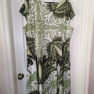 Lily plus size fit flare women's short sleeve dress green floral size 2xL