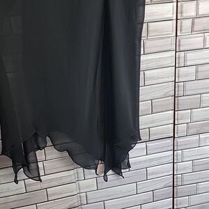 100% rayon lightweight sheer pull on long midi skirt with a sheath mini skirt lining by Lily. This skirt is hard to photograph but it's beautiful on. Great pre-owned condition.