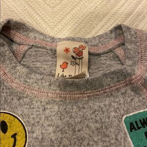 Lily Bleu Little Girls Graphic Patch Sweatshirt. Patches are transfers on shirt. Gently worn. Made of polyester and spandex. Size 4.