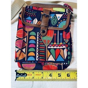 Lily Bloom Mini Flapper Crossbody bag made from recycled materials, Gently used it has a mark on the buckle and a small one on the strap please see pictures.