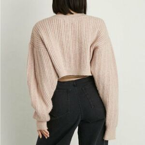 Lily Brown Pink Sparkle Cropped Ribbed Knit Cardigan
