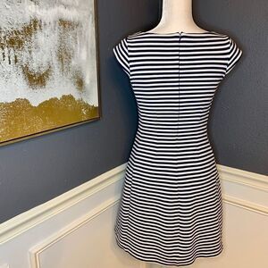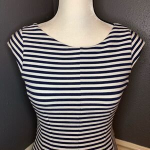 Lined, thicker material, cap sleeve, flattering fit. Size S