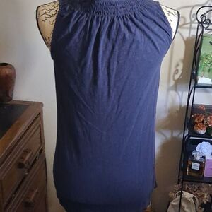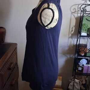 Elegant sleeveless navy top with button details. Perfect for casual outings or layering.