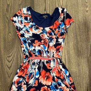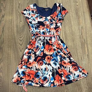 Lily Rose Fit & Flare Dress Floral Short Sleeve Scoop Neck Multicolor Size L