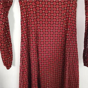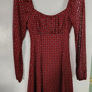 Gorgeous dress! New with tags! Junior size XS! The color is like a maroonish.....(might look different to your eyes) Has Gold and black throughout! Arms are sheer. SF/PF
