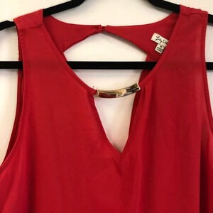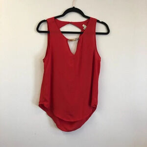 Red Sleeveless Top Medium Gold Bar in Front Scoop with V neck Bust 19 Length varies 24 Flowy Back