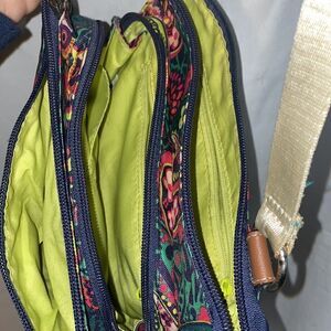 Cross body bag with three large compartment and tree small pockets on the outside. In good condition