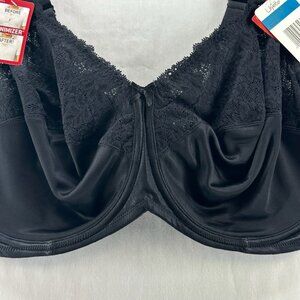 Lilyette 0428 Minimizer Bra Womens 40DDD Underwire Full Coverage Lace Trim Black