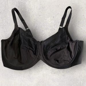 Lilyette Minimizer Bra 42DD Lace Trim Underwire 0434 Black