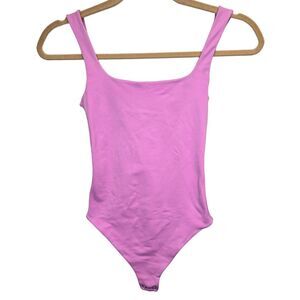 Lilyful Women's Bright Pink Thong Bodysuit. Crotch snap closure. Color is a bright pink.
