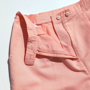 VTG and straight out of the 90s - These extremely soft shorts feature a high rise with a partially elastic waistband, wide legs, and open pockets on the front hips. They zip and double button to close with front pleats. They're a beautiful baby pink color. There is a small brand flag on the right hip. Classic, preppy, and cute! Tuck in a t-shirt or blouse and pair with sandals for the ultimate retro look, also cute with crop tops! Extremely nostalgic with a Y2K vibe! High quality!