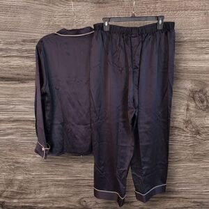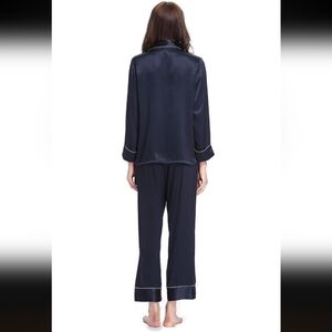 Experience luxurious comfort with this navy satin pajama set. Perfect for a cozy night's sleep.